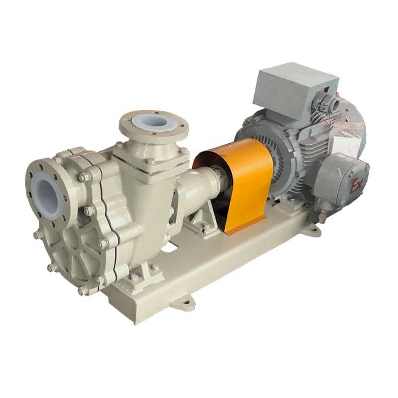 產品介紹: SZF型氟塑料合金加藥泵的主要部件有泵體、止回閥、前蓋、密封墊、泵蓋、葉輪、密封、軸承箱、電動機、底座。過流部件使用氟塑料合金制造。泵體部分由吸液室、儲液室、蝸殼、回流孔、氣液分離室等組成。當泵啟動后,在離心力的作用下,泵體吸水室中的剩余液體與進液管路中的空氣,被葉輪攪拌成氣水混合物。混合物經蝸殼進入氣液分離室,隨著流速的減慢,導致氣水分離,空氣由泵出口排出,液體經回水孔返回泵內。反復多次循環,進液管道中的空氣被排凈,使泵內形成一定的真空度,達到自吸的作用。SZF型氟塑料合金加藥泵是抽低液位腐蝕性介質的理想用泵。